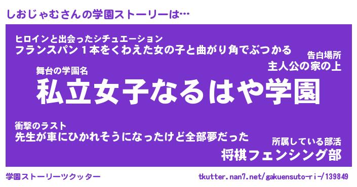 | ファンタジー風あだ名 | 『シオフェル』『エターナルシオジャムー』 |