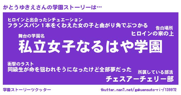 | 女子向けラノベタイトル風あだ名 | 『かとうゆきえ姫と円卓の騎士』 |