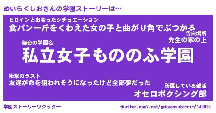 | ヘコむあだ名 | 『めいにゅー』『つくし』『めいっ子』 |