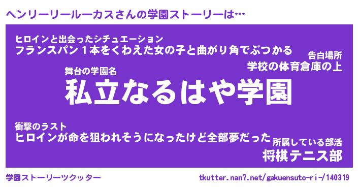 | 男性向けラノベタイトル風あだ名 | 『ヘンリーリールーカスの憂鬱』 |