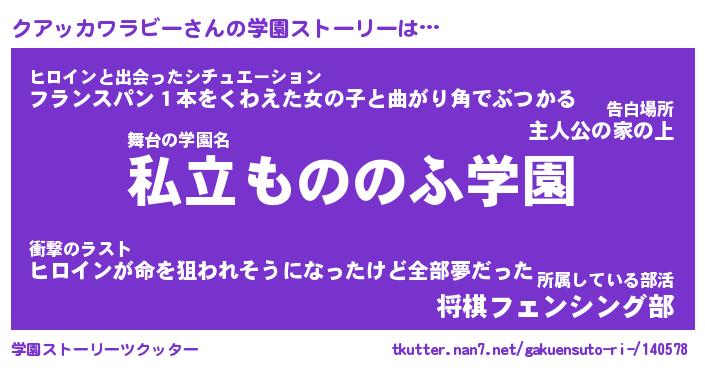 | 男性向けラノベタイトル風あだ名 | 『クアッカワラビーの憂鬱』 |