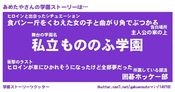 | 告白場所 先生の家の上 …「ふぃぎゅこ」 | 2月17日 06:24 |