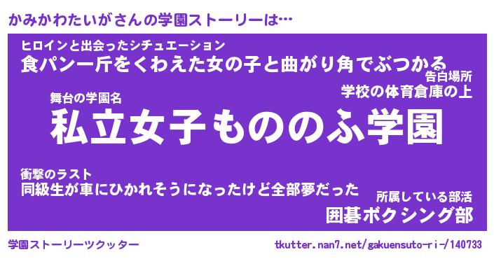 | 胡散臭い通販商品みたいなあだ名 | 『億万長者になれる水晶球…その名も「かみかわたいが」』 |