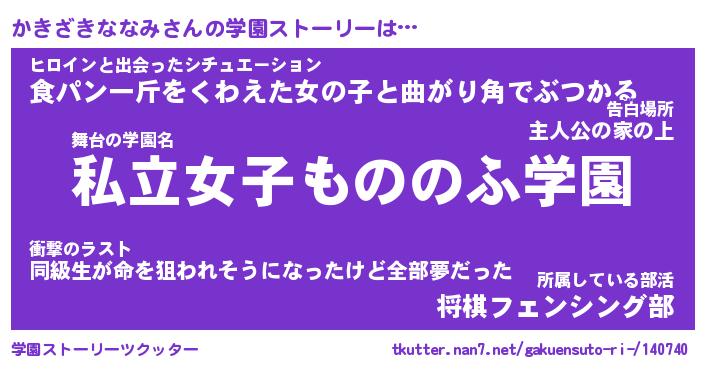 伝説のあだ名 | 『封印されし竜騎士かきざきななみ』 |
