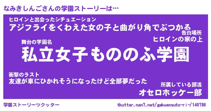 | 男性向けラノベタイトル風あだ名 | 『ナミキシンゴアートオンライン』 |