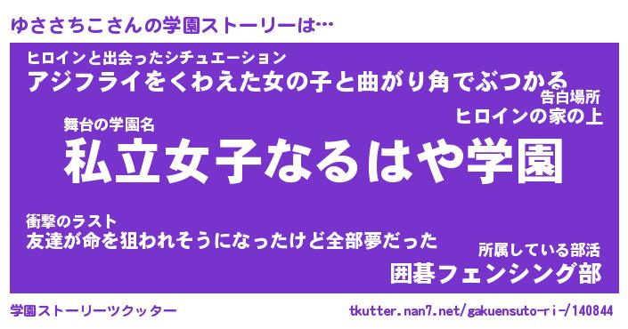 | 女子向けラノベタイトル風あだ名 | 『ゆささちこ姫と円卓の騎士』 |
