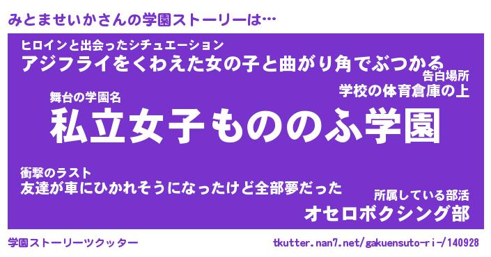 | ヒーロー風カッコイイあだ名 | 『スーパーミトマセイカ』『幻影騎士ミト』 |