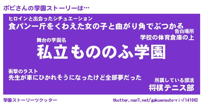 | 男性向けラノベタイトル風あだ名 | 『ポピの憂鬱』『ノーゲーム・ノーポピ』 |
