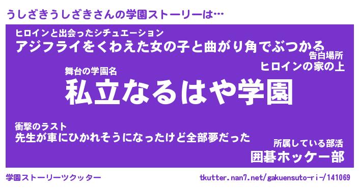 | 女子向けラノベタイトル風あだ名 | 『(仮)うしざきうしざきのやんごとなき事情』 |