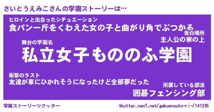 | 女子向けラノベタイトル風あだ名 | 『さいとうえみこ姫と円卓の騎士』 |