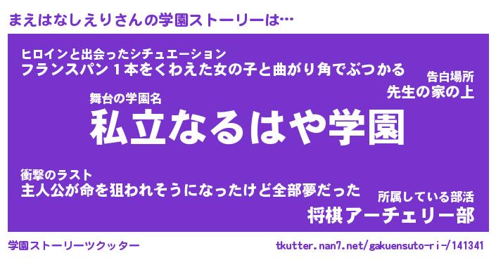 | 女子向けラノベタイトル風あだ名 | 『(仮)まえはなしえりのやんごとなき事情』 |