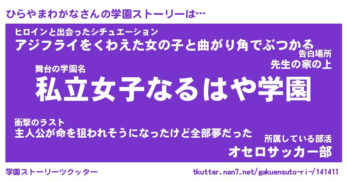 | 女子向けラノベタイトル風あだ名 | 『誰かこのひらやまわかなを説明してください! ~契約から始まるウェディング~』 |