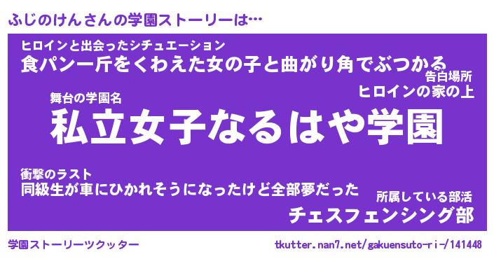 | 女子向けラノベタイトル風あだ名 | 『ふじのけん姫と円卓の騎士』 |