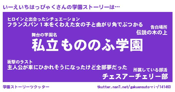 | 女子向けラノベタイトル風あだ名 | 『いーえいちはっぴゃく姫と円卓の騎士』 |