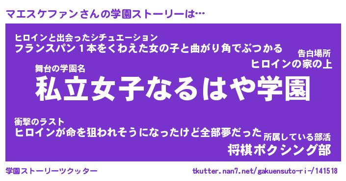| 女子向けラノベタイトル風あだ名 | 『マエスケファン姫と円卓の騎士』 |