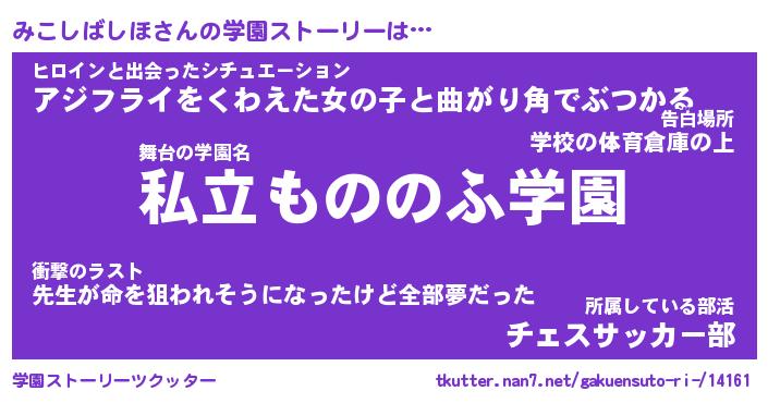 | ヘコむあだ名 | 『みこにー』『酢こんぶ』『みこお』 |