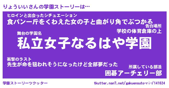 | 男性向けラノベタイトル風あだ名 | 『リョウイイアートオンライン』 |