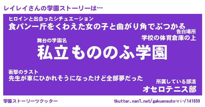 | 男性向けラノベタイトル風あだ名 | 『レイレイの憂鬱』 |