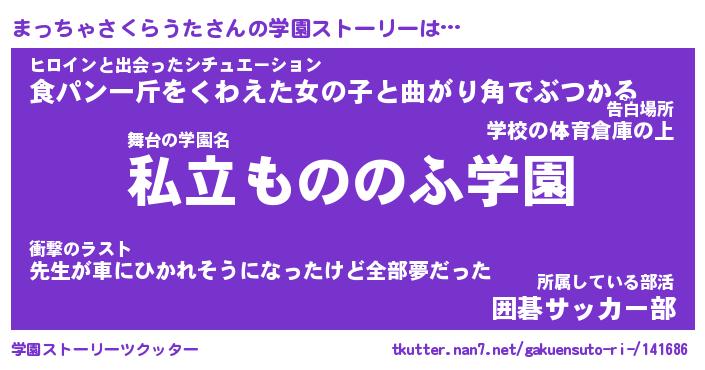 | 男性向けラノベタイトル風あだ名 | 『まっちゃさくらうたの憂鬱』 |