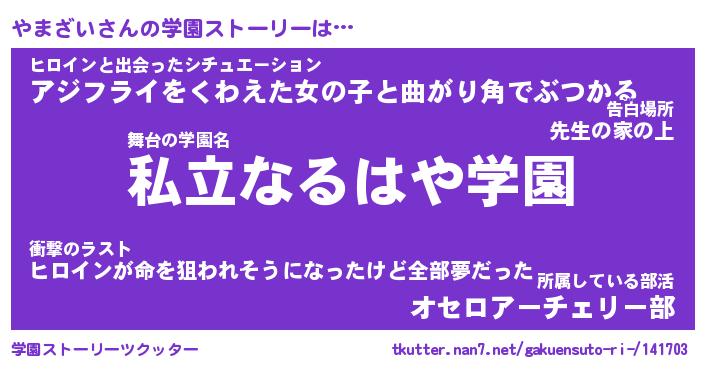 | 男性向けラノベタイトル風あだ名 | 『やまざいの憂鬱』 |