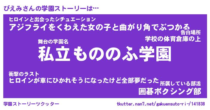 | 女子向けラノベタイトル風あだ名 | 『びえみ姫と円卓の騎士』 |