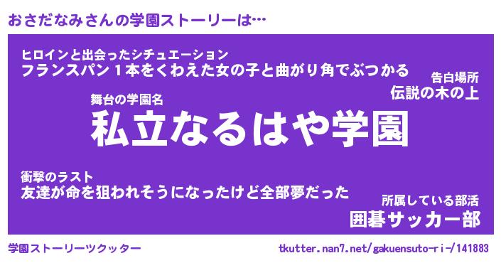 | 女子向けラノベタイトル風あだ名 | 『おさだなみ姫と円卓の騎士』 |