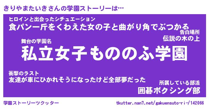 | ヘコむあだ名 | 『きりにゅー』『豆乳』『きりっちょ』 |