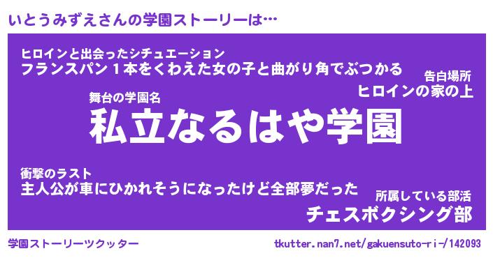 | 女子向けラノベタイトル風あだ名 | 『(仮)いとうみずえのやんごとなき事情』 |