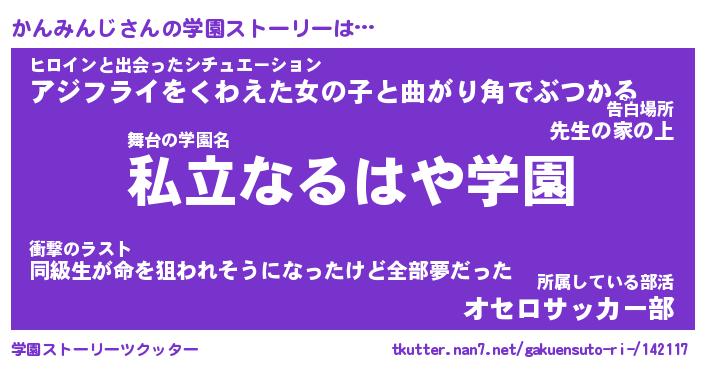 | 男性向けラノベタイトル風あだ名 | 『かんみんじの憂鬱』 |