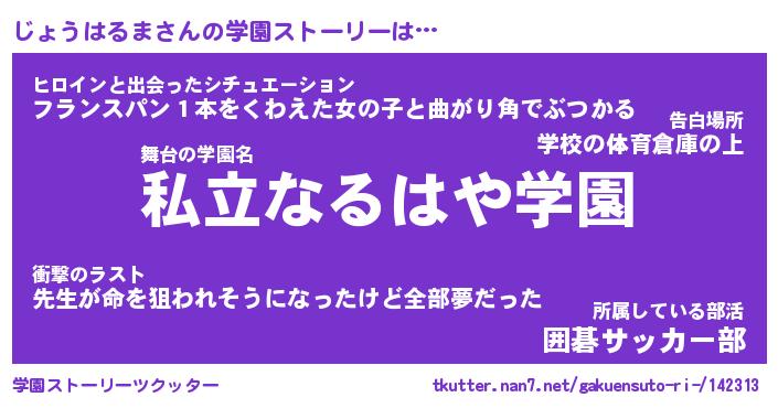 | 男性向けラノベタイトル風あだ名 | 『じょうはるまの憂鬱』 |