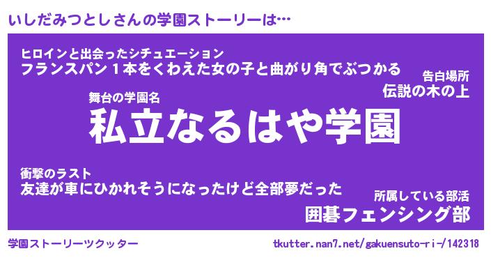 | ヒーロー風カッコイイあだ名 | 『スーパーイシダミツトシ』 |