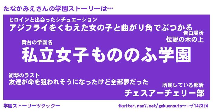 | ファンタジー風あだ名 | 『タナフェル』『エターナルタナカミエー』 |