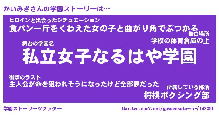 | ヒーロー風カッコイイあだ名 | 『スーパーカイミキ』『天弓騎士カイ』 |