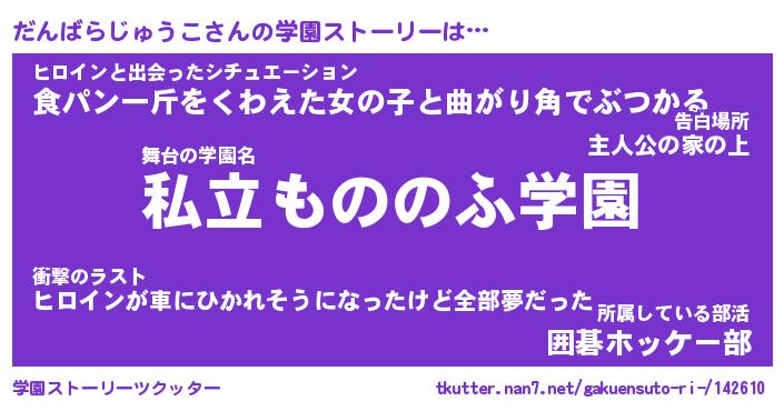 | 胡散臭い通販商品みたいなあだ名 | 『必ず成功するブレスレット…その名も「だんばらじゅうこ」』 |
