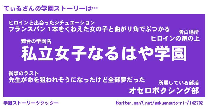 | 告白場所 先生の家の上 …「ふぃぎゅこ」 | 2月17日 06:24 |
