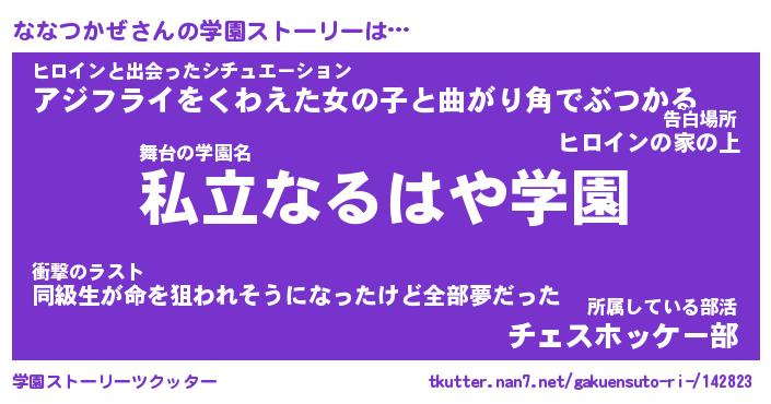 | 男性向けラノベタイトル風あだ名 | 『ななつかぜの憂鬱』 |