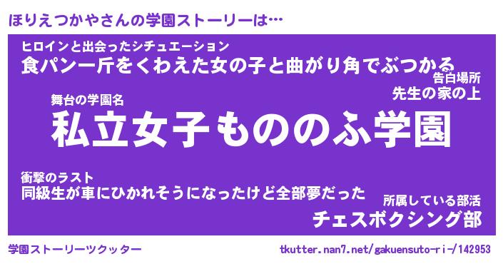 | 女子向けラノベタイトル風あだ名 | 『誰かこのほりえつかやを説明してください! ~契約から始まるウェディング~』 |