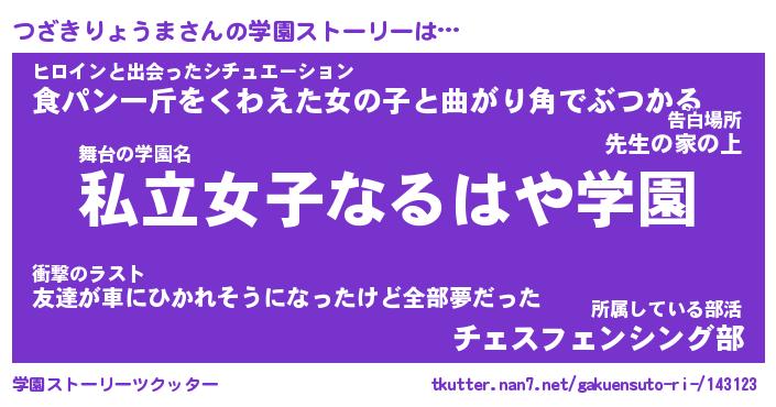 | 告白場所 先生の家の上 …「ふぃぎゅこ」 | 2月17日 06:24 |