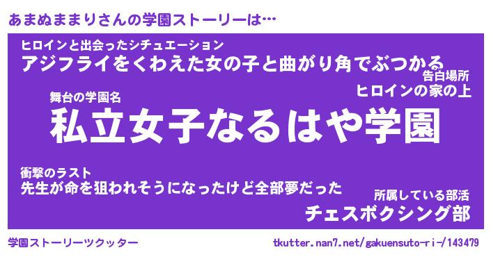 | 伝説のあだ名 | 『封印されしスナイパーあまぬままり』 |