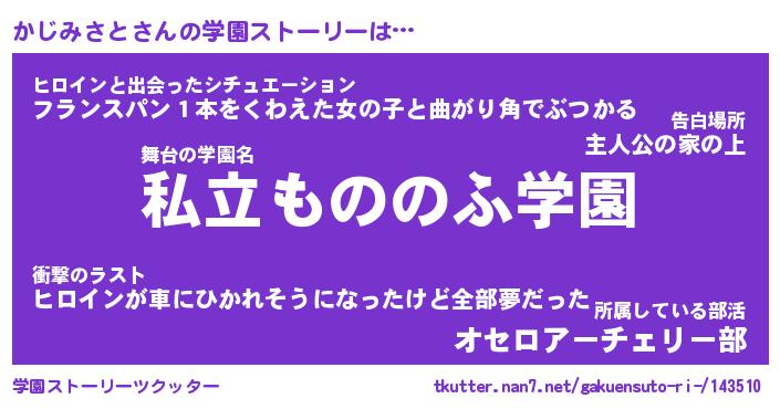 | 男性向けラノベタイトル風あだ名 | 『かじみさとの憂鬱』 |