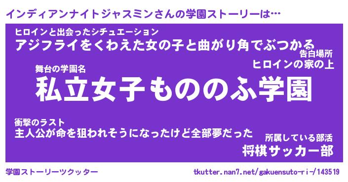 | 女子向けラノベタイトル風あだ名 | 『誰かこのインディアンナイトジャスミンを説明してください! ~契約から始まるウェディング~』 |