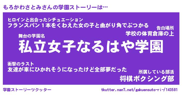 | 肩書あだ名 | 『もろかわさとみ御曹司』 |