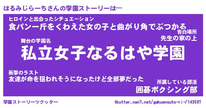 | 告白場所 先生の家の上 …「ふぃぎゅこ」 | 2月17日 06:24 |