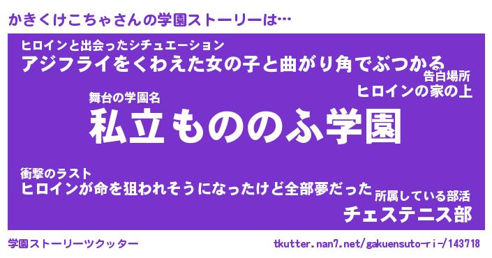 | 男性向けラノベタイトル風あだ名 | 『かきくけこちゃの憂鬱』 |