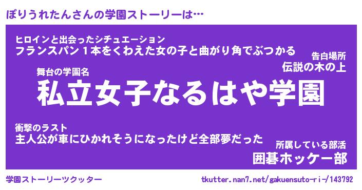 | 女子向けラノベタイトル風あだ名 | 『ぽりうれたん姫と円卓の騎士』 |