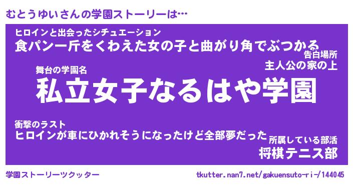 | 伝説のあだ名 | 『封印されしスナイパーむとうゆい』 |