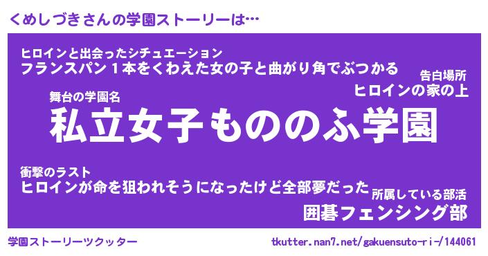 | 女子向けラノベタイトル風あだ名 | 『くめしづき姫と円卓の騎士』 |