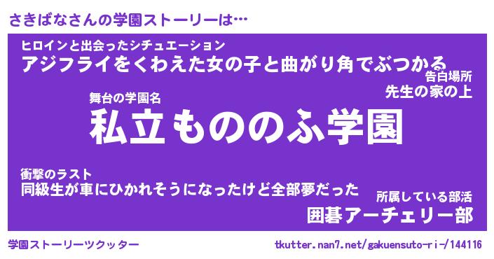 | ファンタジー風あだ名 | 『サキフェル』『エターナルサキバナー』 |