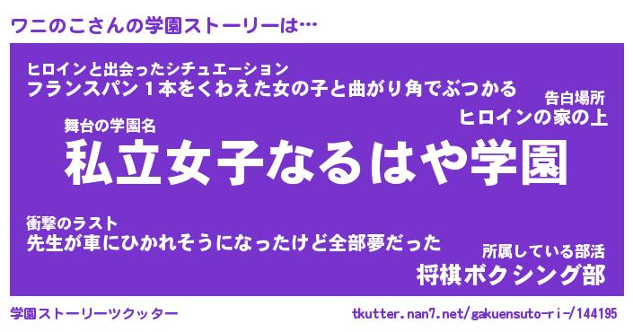 | 女子向けラノベタイトル風あだ名 | 『ワニのこ姫と円卓の騎士』 |