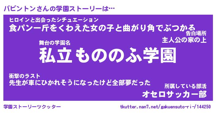 | ファンタジー風あだ名 | 『バビフェル』『エターナルバビントンー』 |